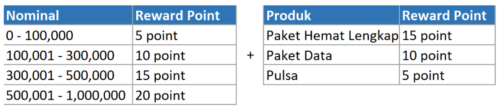 - Perhitungan poin dilakukan secara akumulatif dengan menjumlahkan poin berdasarkan nominal pulsa / paket data / paket hemat lengkap di Livin’ Sukha dan dari jenis produk yang dibeli.